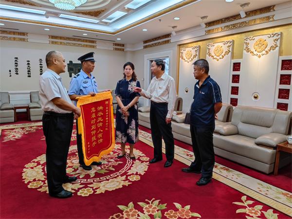 2021年7月28日下午3點(diǎn),“感謝你們,我這條命是你們撿回來的!”安勤公司員工曹運(yùn)玲拿著“洪水無情人有情,危難時(shí)刻伸援手”的錦旗在市黨政綜合大樓一樓會客室送到市黨政綜合樓保安中隊(duì)中隊(duì)長戶永豐手中,感謝他們的救命之恩。安陽市機(jī)關(guān)事務(wù)中心、三級調(diào)研員陳紹華,機(jī)關(guān)事務(wù)中心、保衛(wèi)科長孫文勝,安陽市安勤商務(wù)公司董事長兼總經(jīng)理劉全喜;安勤商務(wù)公司副總經(jīng)理王軍;安陽經(jīng)開集團(tuán)黨委委員、副總經(jīng)理劉志霞,公司黨委委員、副總經(jīng)理魏東,總經(jīng)理助理、人防分公司經(jīng)理李向陽,參加此次活動。