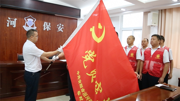 會(huì)上,公司黨委副書(shū)記、監(jiān)事長(zhǎng)張錫軍宣讀關(guān)于成立臨時(shí)黨支部的決定。下沉干部臨時(shí)黨支部書(shū)記馮文峰作表態(tài)發(fā)言,表示要發(fā)揚(yáng)臨時(shí)黨支部戰(zhàn)斗堡壘作用,發(fā)揮黨員先鋒模范作用,堅(jiān)決完成黨委交給的任務(wù)。接著,王高峰為下沉干部臨時(shí)黨支部授旗。全體下沉干部對(duì)著鮮艷的黨旗莊嚴(yán)宣誓:我志愿加入黨員突擊隊(duì),堅(jiān)決做到服從命令、聽(tīng)從指揮,排除萬(wàn)難、不怕?tīng)奚?,齊心協(xié)力,勇克難關(guān),為洹河保安爭(zhēng)光添彩。