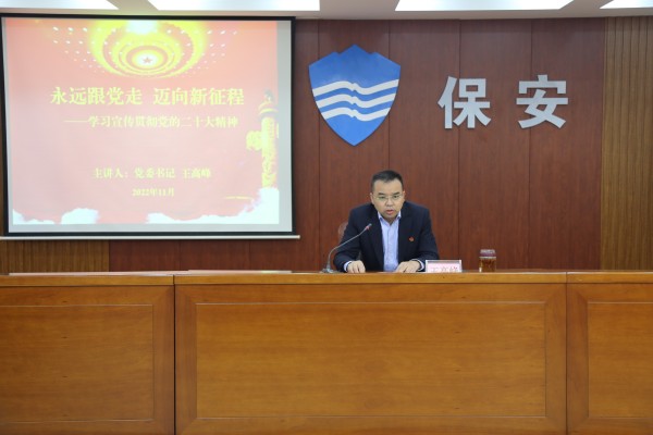 11月7日下午,為深入學習宣傳貫徹黨的二十大會議精神,公司黨委書記、董事長王高峰在五樓會議室以“永遠跟黨走 邁向新征程”為主題開展宣傳貫徹黨的二十大精神專題黨課,公司機關(guān)黨支部、第二黨支部全體黨員、預(yù)備黨員、入黨積極分子參加了專題黨課。