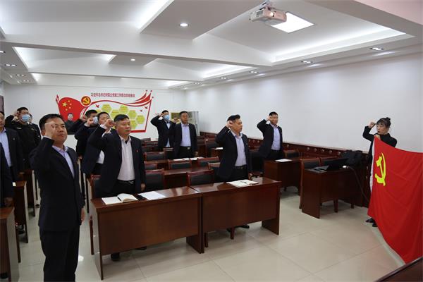 重溫入黨誓詞,回憶入黨初心?!拔抑驹讣尤胫袊?guó)共產(chǎn)黨,擁護(hù)黨的綱領(lǐng),遵守黨的章程,履行黨員義務(wù),執(zhí)行黨的決定……”面對(duì)鮮紅的黨旗,孫國(guó)濤帶領(lǐng)全體黨員高舉右手,莊嚴(yán)宣誓,用堅(jiān)毅的目光、洪亮的聲音,詮釋對(duì)黨的無(wú)限忠誠(chéng)和為黨的事業(yè)奮斗終身的堅(jiān)定信念。