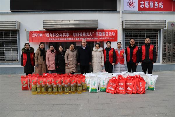 為進(jìn)一步了解基層群眾的需求,切實(shí)解決他們?cè)谏钪械膶?shí)際問(wèn)題,讓他們度過(guò)一個(gè)溫暖、祥和、快樂(lè)的新春佳節(jié)。1月17日下午,公司總經(jīng)理魏東帶領(lǐng)志愿者帶著米、面、油、春聯(lián)等深入盤庚中社區(qū)開展了“義寫春聯(lián)迎新春”暨“我為群眾辦實(shí)事慰問(wèn)孤寡老人”志愿服務(wù)活動(dòng)。