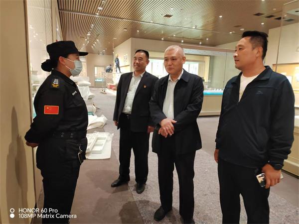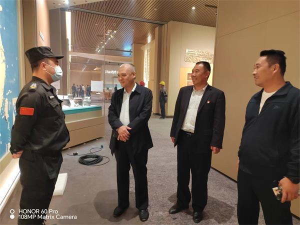 在殷墟博物館,魏東拜訪了殷墟博物館黨總支書記、常務副館長趙清榮和副館長徐河建,深入了解館方需求以及安保工作中的不足之處。趙清榮對特保大隊殷墟中隊認真負責的工作態(tài)度給予了充分肯定。魏東表示,公司將按照博物館領導要求和合同約定,全力以赴做好新展館開館前的各項安保工作。隨后,魏東來到殷墟新展館,認真查看駐點勤務情況,詳細了解特保隊員的工作環(huán)境和思想動態(tài)。魏東強調,目前新展館處于施工沖刺和前期布展的關鍵階段,特保隊員一定要克服困難,履職盡責,為新展館順利開館提供安全保障。
