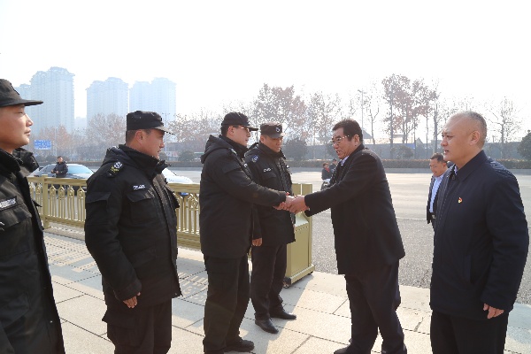 王保友一行人分別來到特保大隊文字博物館中隊、市監(jiān)委中隊看望正在執(zhí)勤的保安隊員,詳細(xì)了解公司隊員的工作生活情況,對公司保安員在維護社會穩(wěn)定方面付出的辛勤努力給予肯定,希望大家能夠勇挑重?fù)?dān)、再接再厲,在行業(yè)發(fā)展、警保聯(lián)動、維護社會穩(wěn)定等方面發(fā)揮更大作用。