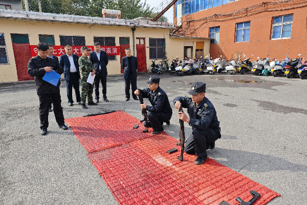 此次考核內(nèi)容為理論考試和實(shí)操技能考核。實(shí)操考核設(shè)置“隊(duì)列動(dòng)作”“擒敵拳”“交通指揮”“鋼叉操”“匕首操”“校園保安勤務(wù)處置預(yù)案”“金融防搶預(yù)案”“車輛爆胎應(yīng)急預(yù)案”“槍支拆裝”九個(gè)項(xiàng)目。