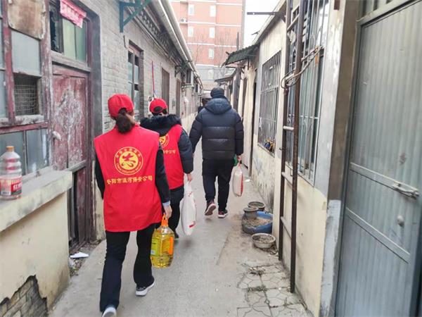 2月1日,公司黨委委員、副總經(jīng)理魏東,帶領(lǐng)公司志愿者提著大米、面粉、食用油、春聯(lián)等慰問品,走進盤庚中社區(qū)造紙廠家屬院,看望慰問獨居老人,在寒冬為他們送去溫暖、關(guān)懷和新春祝福。