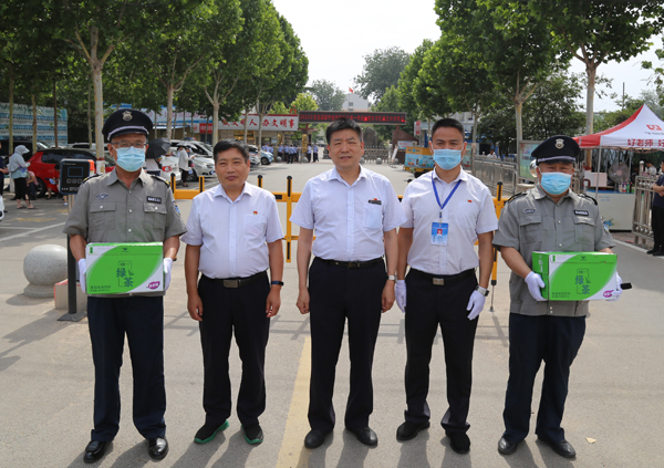 6月7日上午,2021年普通高校招生全國統(tǒng)一考試正式開考,公司黨委書記、董事長、總經(jīng)理王高峰,黨委副書記、工會主席張錫軍分別帶隊巡視市區(qū)高考考點安保工作,同時慰問執(zhí)勤保安員。王高峰指出,要強化責任擔當,周密部署、科學調(diào)度、協(xié)同配合,統(tǒng)籌做好疫情防控防控和安保工作,確保高考期間公司負責安保的各考點的安全有序。公司領(lǐng)導(dǎo)高代獻、魏東、楊克忠一同參加。