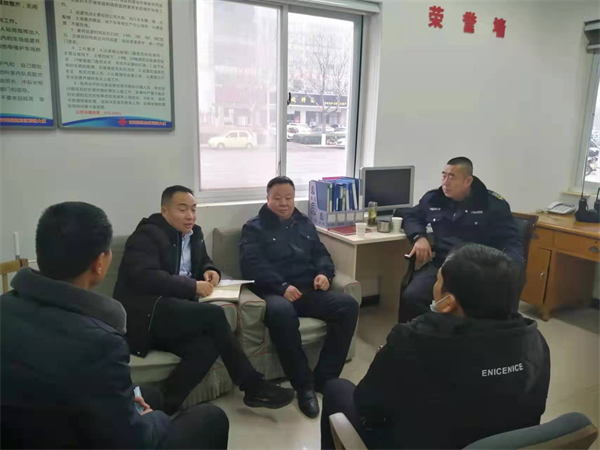 1月5日,馮文峰和一大隊(duì)副大隊(duì)長侯玉生先后來到中國銀行、中國人民銀行、開發(fā)區(qū)管委會(huì)、熱電廠、會(huì)展中心、中國聯(lián)通等崗點(diǎn),與他們的中隊(duì)長座談交流,了解隊(duì)伍工作現(xiàn)狀,看到隊(duì)員精神飽滿,隊(duì)伍穩(wěn)定。馮文峰鼓勵(lì)大家要新年新氣象,立足崗位,高質(zhì)量服務(wù)好客戶。