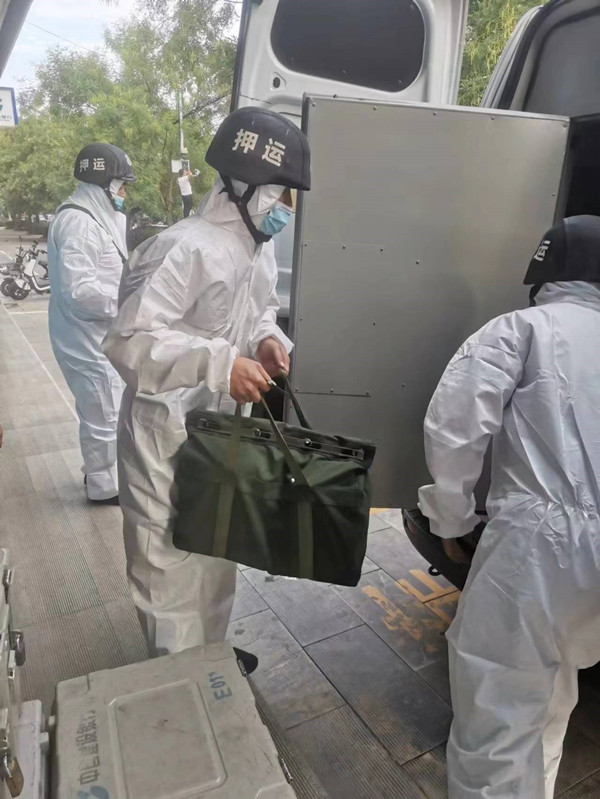 疫情就是命令。隊(duì)長(zhǎng)馮文峰第一時(shí)間安排車組,調(diào)配人員,并強(qiáng)調(diào),執(zhí)勤人員在按時(shí)接回款箱的同時(shí),要做好個(gè)人防護(hù)。在馮文峰的指揮下,湯陰車組身著防化服,趕赴湯陰,準(zhǔn)時(shí)、圓滿的完成了押運(yùn)任務(wù)。