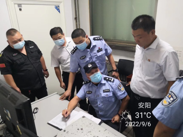9月6日上午,安陽市公安局治安支隊(duì)民警郭慶林、張濤一行在守押分公司領(lǐng)導(dǎo)韋洪東的陪同下,到七大隊(duì)檢查工作,大隊(duì)長楊中朝全程陪同。