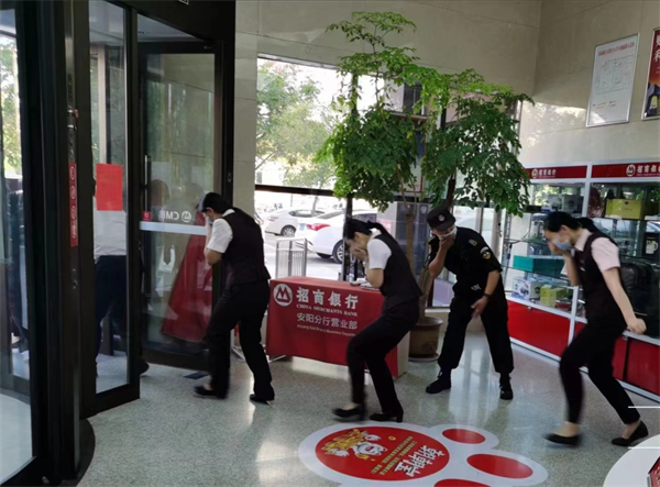 為進一步強化“國慶”、“二十大”期間金融部門銀行業(yè)對外營業(yè)安全及應(yīng)對突發(fā)事件能力,10月3日下午,招商銀行聯(lián)合特保大隊駐招商銀行特保班進行了消防應(yīng)急預(yù)案演練,特保班長王瑜負責(zé)組織指揮,特保隊員分工明確行動迅速、妥善處理險情,受到銀行保衛(wèi)部經(jīng)理王瀟曉的好評。