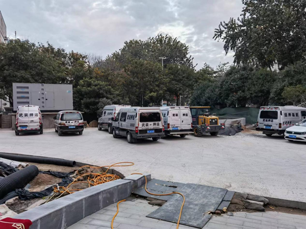 自入秋以來,中國銀行院內改造工程進入地面破拆硬化階段。隨著工程進行,院內地面泥濘不堪,我大隊款車只能在院外等候,押運人員接送款箱采取徒步押運方式往返金庫,疊加院內施工車輛眾多,施工人員復雜等情況,為我大隊的日常勤務工作帶來極大風險。