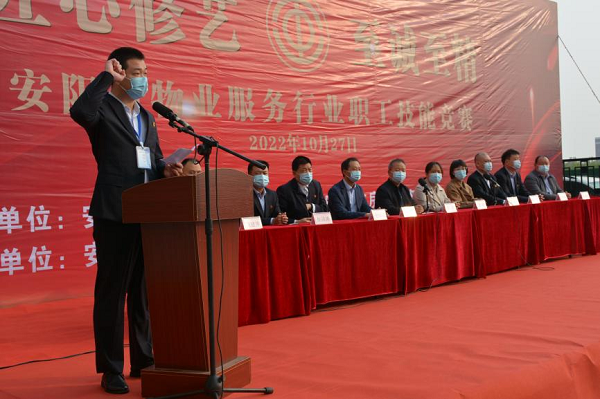 安陽市總工會四級調(diào)研員苗廣軍同志指出,本次職業(yè)技能大賽不僅是學(xué)習(xí)貫徹黨的二十大精神,弘揚勞動精神、勞模精神、工匠精神的重要舉措,也是提升職工技能水平的重要手段,同時,強調(diào)本次技能大賽既可以塑造廣大職工在“干中學(xué)”、“學(xué)中練” “練中賽”的骨干品格,彰顯勞動內(nèi)容,也是物業(yè)行業(yè)水平的大比武,職工素質(zhì)的大提升,希望參賽選手在比賽中展出風(fēng)格,賽出水平,在平凡崗位上進行不平凡的事業(yè)。