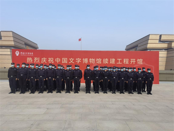 特保大隊(duì)駐中國文字博物館中隊(duì)為續(xù)建工程開館能夠順利,保證活動有序進(jìn)行,保證活動現(xiàn)場安全無事故,所有不當(dāng)班隊(duì)員65人在15日利用半天時(shí)間鋪設(shè)到所有場地進(jìn)行熟悉崗位和職責(zé)。外圍車場、廣場、會場安全保衛(wèi),只要能走到的地方都可以看見他們的身影。16日早上6:30全員集合,整裝待發(fā)為活動盡自己最大努力。