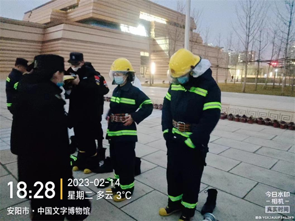 冬春交替,為有力遏制和預(yù)防火災(zāi)的發(fā)生,為進一步加強隊員們的安全防火意識,提升其在處理突發(fā)事件過程中的協(xié)調(diào)配合 能力,2月14日下午,特保大隊駐中國文字博物館中隊組織全體隊員開展了消防滅火演練。