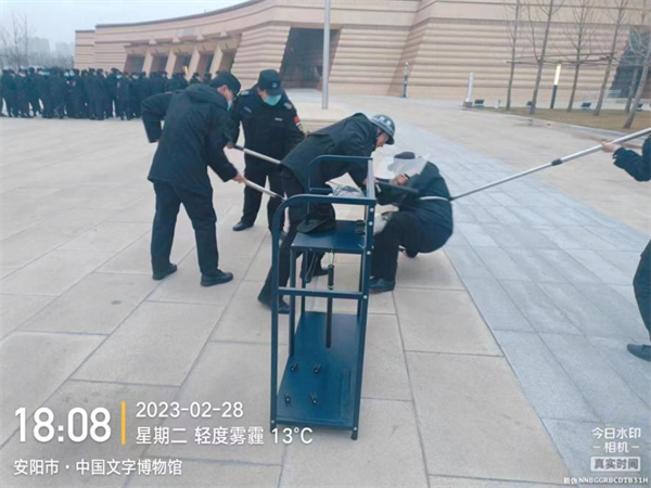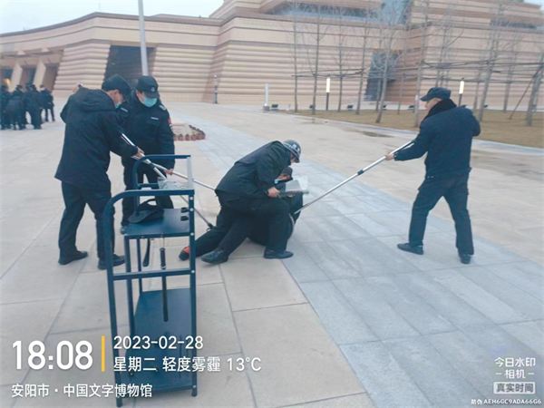 為增強(qiáng)特保隊(duì)員的反恐安全意識(shí),提高對(duì)暴恐突發(fā)事件的應(yīng)變和處置能力,2月28日,特保大隊(duì)駐中國(guó)文字博物館中隊(duì)組織開(kāi)展了反恐防暴應(yīng)急演練活動(dòng)。
