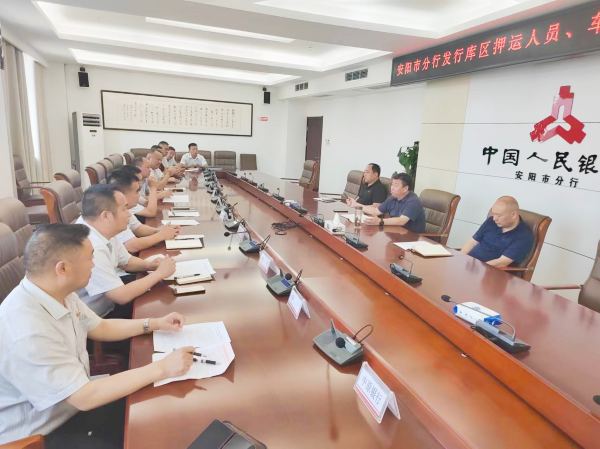 為進一步規(guī)范守押人員及車輛在人民銀行安陽分行業(yè)務期間的管理,保障交取款業(yè)務順利進行,5月17日,守押分公司經(jīng)理張合印、副經(jīng)理韋洪東帶領(lǐng)各大隊負責人參加人民銀行安陽分行發(fā)行庫區(qū)押運人員、車輛管理專題會。