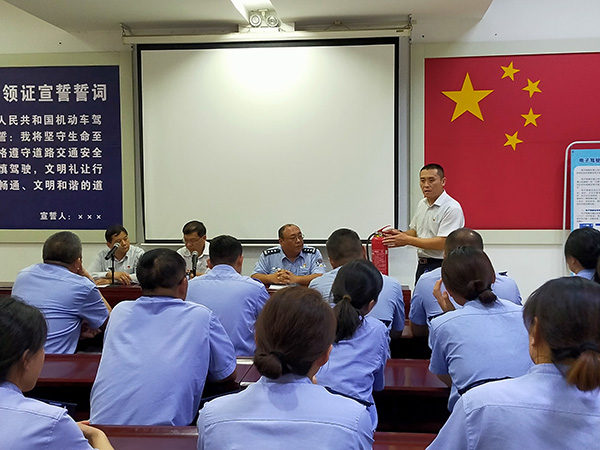 為貫徹落實公司“安全生產(chǎn)月”活動安排,嚴防各類事故發(fā)生,營造安全工作的良好氛圍。6月20日,鼎信公司聯(lián)合駕管科進行消防器材學(xué)習及消防安全演練。駕管科副科長李震、鼎信公司經(jīng)理朱新建及相關(guān)民警、輔警、干部職工參加活動。