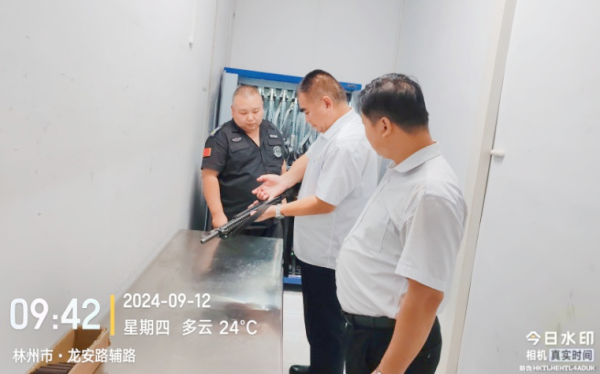 在檢查中,韋洪東首先查看了守庫(kù)室的槍支申領(lǐng)登記填寫和守庫(kù)室衛(wèi)生情況,并核對(duì)了槍彈數(shù)量、槍支擦拭及保養(yǎng)情況;其次查看了監(jiān)控報(bào)警和消防設(shè)備,并詢問(wèn)報(bào)警設(shè)備的測(cè)試情況;隨后對(duì)照了押運(yùn)槍支槍號(hào)、槍證號(hào)的填寫記錄。并要求大隊(duì)結(jié)合自身情況,每月定期開展自查。
