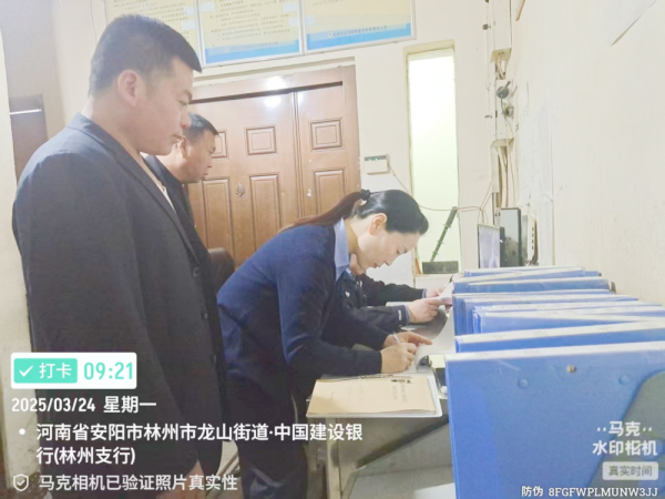 3月24日上午9時左右,林州市公安局治安大隊(duì)民警郝白山一行人到七大隊(duì)農(nóng)商行和建行中隊(duì)檢查守庫槍支工作。各中隊(duì)副隊(duì)長全程陪同檢查。