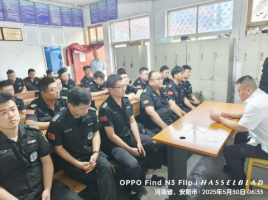 會(huì)議強(qiáng)調(diào),一是全面學(xué)習(xí)公司文件“關(guān)于做好2025年端午節(jié)放假和安全保衛(wèi)工作的通知”,做到放假不放制度。二是強(qiáng)化槍彈管理,節(jié)前開展槍彈安全排查,槍彈監(jiān)督安全員要時(shí)刻做好監(jiān)督,槍彈領(lǐng)取交接臺(tái)賬要填寫規(guī)范,嚴(yán)格遵守守押操作規(guī)程。三是嚴(yán)格杜絕酒后上崗,做好每日酒精測(cè)試工作。要求著裝規(guī)范和符號(hào)齊全,時(shí)刻注意工作形象。四是節(jié)日期間車輛增多,要求所有司機(jī)文明駕駛,減速慢行,尤其是鄉(xiāng)間交叉路口、學(xué)校和旅游區(qū)附近,提高工作責(zé)任心,謹(jǐn)慎駕駛。