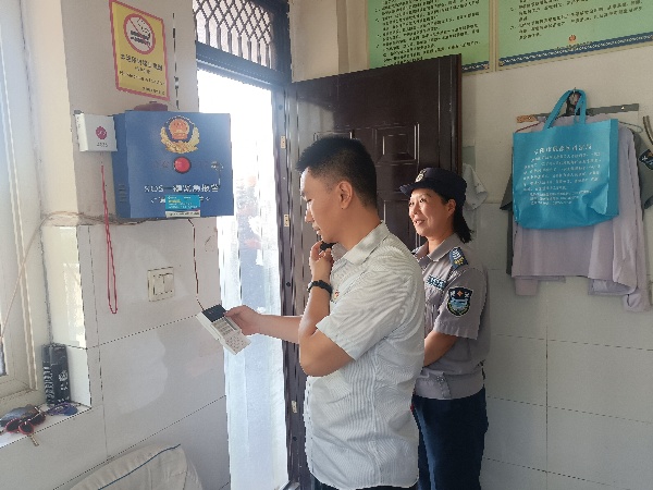技防分公司副經(jīng)理劉帥帶領(lǐng)專業(yè)技術(shù)人員, 通過外觀檢查、報警響應(yīng)測試、語音對講功能、線路與供電檢查等,對考點學(xué)校一鍵報警系統(tǒng)進(jìn)行全流程、專業(yè)化檢測。同時對安保人員進(jìn)行專項培訓(xùn),強化設(shè)備操作規(guī)范與應(yīng)急處置能力,確保關(guān)鍵時刻“一鍵即應(yīng)、高效處置”。