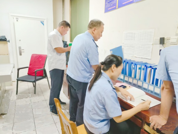 8月25日上午,林州市公安局治安大隊民警郝白山一行三人到守押七大隊林州農(nóng)商行中隊檢查槍彈安全工作,大隊長楊中朝全程陪同檢查。