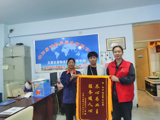 接到求助后,保潔人員詳細記錄了衣物的特征、晾曬時間及發(fā)現(xiàn)丟失的時間,并第一時間在可能掉落的區(qū)域展開細致查找。經(jīng)過多方努力,最終在10號樓南側(cè)的綠化帶中找到了業(yè)主丟失的衣物,并及時歸還。業(yè)主對物業(yè)高效、負責的工作態(tài)度表示高度認可,特意制作了一面寫有“盡心為業(yè)主 服務(wù)暖人心”的錦旗贈予物業(yè)服務(wù)中心,以表達誠摯感謝。