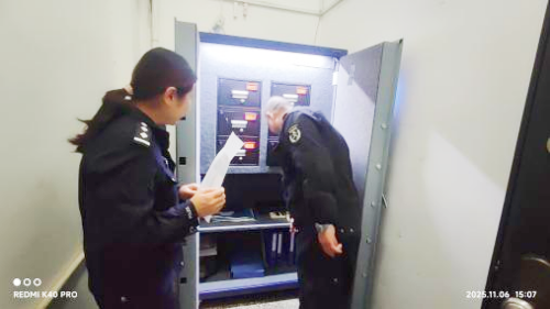 11月6日下午,安陽(yáng)市公安局龍安分局民警王靜靜對(duì)守押十二大隊(duì)相州農(nóng)商銀行中隊(duì)進(jìn)行槍支管理工作專(zhuān)項(xiàng)檢查。