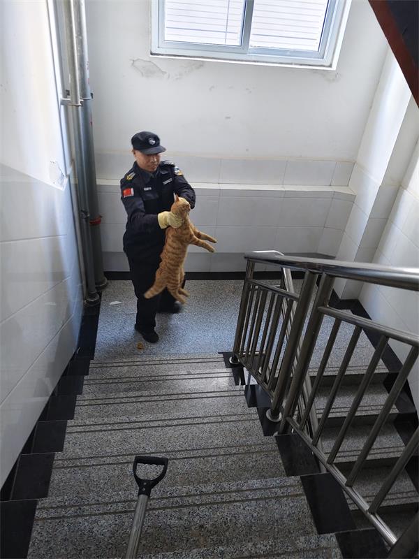 當(dāng)日,趙付山同志按規(guī)范開展校園巡邏時(shí),發(fā)現(xiàn)一只流浪貓突然闖入學(xué)生宿舍區(qū)域,可能威脅學(xué)生人身安全。他迅速反應(yīng)、沉著處置,立即啟動應(yīng)急流程,一邊安撫現(xiàn)場學(xué)生情緒,一邊采取安全穩(wěn)妥方式對流浪貓進(jìn)行驅(qū)離,最終想盡一切辦法才捉住了身形矯健的流浪貓并交給了有關(guān)部門處置。之后趙付山又對宿舍區(qū)域進(jìn)行了全面安全檢查,確保無后續(xù)風(fēng)險(xiǎn)。其專業(yè)高效的處置能力和心系師生的責(zé)任意識,得到學(xué)校及師生的充分肯定,學(xué)校專門發(fā)布通報(bào)對其予以表揚(yáng)。