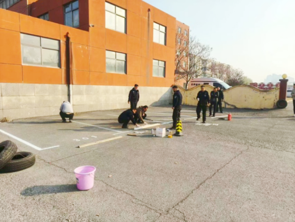 劃線過(guò)程中,守押七大隊(duì)建行中隊(duì)副隊(duì)長(zhǎng)王彥亮帶隊(duì),全程統(tǒng)籌組織實(shí)施。嚴(yán)格按照交通安全設(shè)施的設(shè)置規(guī)范,采用耐磨、反光效果好的專業(yè)涂漆,對(duì)押運(yùn)車輛停放區(qū)進(jìn)行精準(zhǔn)劃分,并清晰標(biāo)注了押運(yùn)車輛車牌號(hào),統(tǒng)一規(guī)定車頭朝外停放,確保車輛進(jìn)出有序、通行順暢。