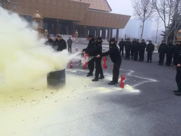 為確保客戶單位生命、財產(chǎn)安全,保障春節(jié)期間安全無事故,特保大隊派駐中國文字博物館中隊按照客戶春節(jié)前消防防控要求,結(jié)合公司《關于開展安全生產(chǎn)大檢查大排查的通知》,每日不同班次相繼進行消防訓練。