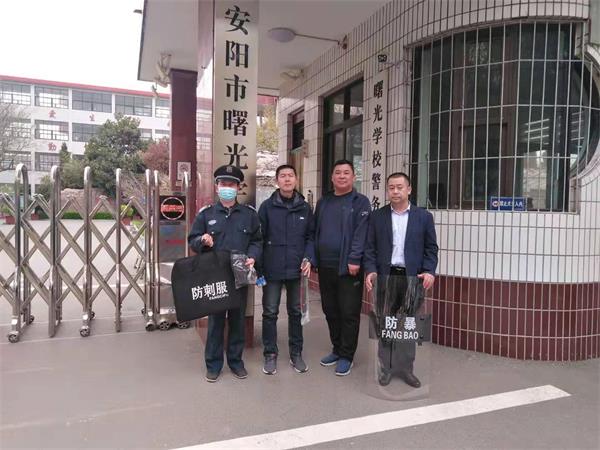 3月31日上午,人防三大隊副大隊長劉慶剛、校園中隊中隊長洪懷軍、班長趙付山一行,帶著頭盔、盾牌、鋼叉、防刺背心等安保器材,深入到各個校園進(jìn)行發(fā)放。