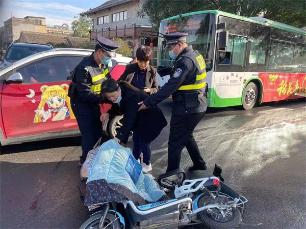 10月11日上午9時(shí)許,人防一大隊(duì)文峰巡防中隊(duì)班長(zhǎng)楊科,隊(duì)員鄭天龍,王軍清等9名隊(duì)員,例行巡邏到文峰北路與三道街交叉口時(shí),路上突發(fā)一起交通事故,事故導(dǎo)致一名婦女摔倒在地,見此情形,隊(duì)員及時(shí)停車上前查看情況。