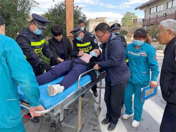 經(jīng)了解,電動(dòng)車車主腿部受傷不能動(dòng),并患有心臟病。隊(duì)員立即幫忙撥打120,同時(shí)幫忙維持現(xiàn)場(chǎng)交通秩序,疏散圍觀群眾,并安撫傷者。直至救護(hù)車到達(dá)現(xiàn)場(chǎng),協(xié)助醫(yī)護(hù)人員幫忙把受傷者抬到救護(hù)車上,隊(duì)員才回到崗位上繼續(xù)巡邏。