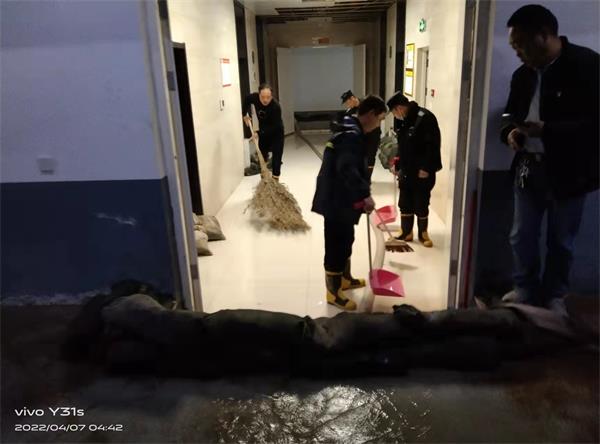 4月6日晚上十一點,人防一大隊駐聯(lián)通公司東區(qū)崗點中、夜班的隊員交接完工作之后,夜班值班隊員杜懷濤、孟慶春開始接班后的正常巡樓工作。當(dāng)他們巡邏到負二層時,聽到有水流的聲音,職業(yè)的敏感提醒他們,有管道跑水,順著流水的聲音巡去,果不其然,負二層中央空調(diào)系統(tǒng)供水管道破裂,管道里的水不停向外噴射,如果不及時處置,會引發(fā)負二層注水,給客戶造成財產(chǎn)損失。兩位值班隊員馬上通知監(jiān)控中心和值班班長,值班班長邱文濤接到報警后迅速向中隊長董紅衛(wèi)匯報情況,同時安排夜班同志到現(xiàn)場處理積水,董紅衛(wèi)趕赴現(xiàn)場后和值班隊員一起配合專業(yè)的維修人員處置險情,經(jīng)過近五個小時的奮戰(zhàn),險情得到妥善解決。