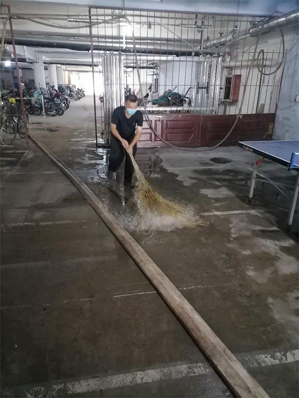 由于漏水面積較大,已經(jīng)漫延到停車場廳,在搶救漏水的過程中,班長張建根及保安員劉濤、李勇,不顧個人安危,掃帚、水桶、抹布等工具齊上陣。清理完漏水時三人身上的鞋襪及衣褲均全部濕透。事后分行保安部經(jīng)理對三人提出表揚,希望駐勤保安員將盡職盡責、吃苦耐勞的精神繼續(xù)發(fā)揚光大,鼓勵他們在以后的工作中更好地為駐勤單位財產(chǎn)安全保駕護航。