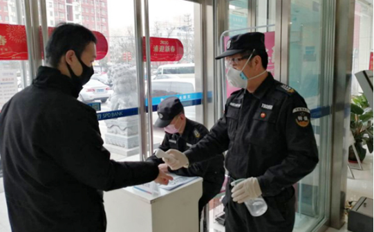 疫情期間,為防止病毒擴(kuò)散傳染,浦發(fā)銀行保安班保安員放棄節(jié)假日休息,滿員滿點(diǎn)上崗。隊(duì)員層層動(dòng)員、壓實(shí)責(zé)任,將學(xué)習(xí)到的各種防控疫情知識(shí)落實(shí)到工作中,確保自身和客戶的安全。首先隊(duì)員做好自我保護(hù),按照要求,上崗戴口罩,手套。其次,他們堅(jiān)持對(duì)進(jìn)出銀行的每位員工,以及辦理業(yè)務(wù)的每位客戶量體溫、做登記、進(jìn)行個(gè)人消毒、詢問(wèn)其是否去過(guò)疫區(qū)。