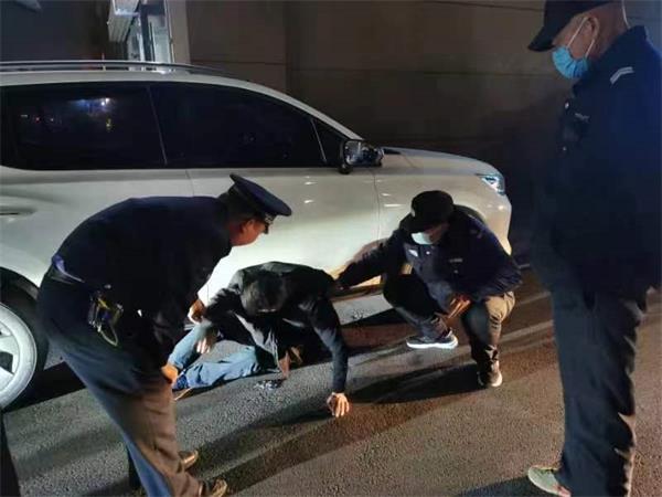 3月29日21:30許,駐龍安區(qū)巡防隊(duì)郭國(guó)峰、崔志濤、肖鵬、畢治華等隊(duì)員巡邏至梅東路與龍圖街西北角處時(shí),借著巡邏車的燈光發(fā)現(xiàn)一輛轎車旁躺著一個(gè)人。于是,他們趕忙過去查看,來(lái)到近前,發(fā)現(xiàn)一名男子身上散發(fā)出很濃的酒氣。由于該路段沒有路燈,能見度極差,不易被發(fā)現(xiàn),人來(lái)車往,極易發(fā)生事故。因該男子已經(jīng)神智不清,無(wú)法給他正常交流,崔志濤隨撥打了110,隊(duì)員們一邊對(duì)該男子進(jìn)行保護(hù),防止發(fā)生意外,一邊勸離圍觀群眾,防止交通堵塞。