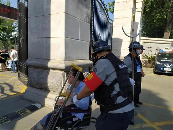 期間,一名開高的考生,因腿受傷不能行走,家長用車子送至一中大門口。保安班長王鳳銀見狀后,主動跟家長和學(xué)校溝通后,帶領(lǐng)隊(duì)員接過了護(hù)送該考生進(jìn)入考場的任務(wù)。他們用一中的輪椅,把考生送至考場外,聯(lián)系老師送至考場內(nèi),考試結(jié)束后,再把考生接出送至大門口。