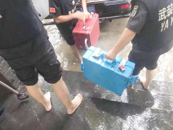 連日來(lái)我市連降大到暴雨,中國(guó)銀行多處網(wǎng)點(diǎn)門(mén)前出現(xiàn)積水,給守押三大隊(duì)押運(yùn)工作帶來(lái)了諸多困難。經(jīng)過(guò)大隊(duì)全體人員齊心協(xié)力、團(tuán)結(jié)協(xié)作,安全完成本輪降雨期間的押運(yùn)任務(wù)。