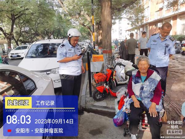 當(dāng)天早上8時(shí)許,駐北關(guān)區(qū)巡防隊(duì)員高亮、王曌執(zhí)行路面治安防控任務(wù),當(dāng)巡邏至洹濱北路腫瘤醫(yī)院門(mén)口時(shí),看見(jiàn)一老人向路人招手,但沒(méi)有人搭腔。于是,他們趕過(guò)去查看情況。經(jīng)詢問(wèn),得知老人走失找不到回家的路。詢問(wèn)其家人電話,家是哪里的,老人也說(shuō)不明白。于是王曌便報(bào)告了110,等110到現(xiàn)場(chǎng)說(shuō)明情況,移交給了民警處理。