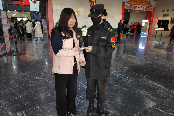 2月2日下午15:20左右,中國文字博物館內(nèi),一名家長(zhǎng)十分慌張地跑到安檢處,請(qǐng)求特保隊(duì)員協(xié)助尋找孩子,稱11歲的孩子在參觀過程中走失,已自行尋找半小時(shí)未果,特保隊(duì)員了解情況后,通知所有崗位進(jìn)行尋找并啟動(dòng)廣播進(jìn)行告知,通過不懈努力,幫其游客找到走失孩子。