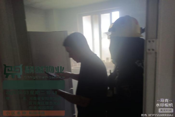 2025 年6月3日上午10點33分,和園一期7號樓2單元6層西戶家中廚房抽油煙機電機老化造成失火,項目經理趙美顏接到電話后立即趕赴現場,并迅速通知當班所有人員,立即啟動了應急預案。在趙經理的指揮下,大家分組行動,保潔、綠化組迅速滅火,保安組負責維護現場秩序,辦公室及水電工疏散周邊居民。外圍保潔付愛民,冒著濃煙和高溫,拿起滅火器奮力撲救,房主見狀,也拿起滅火器加入撲救,火情撲滅后,保潔人員組織清理現場和開啟通風設施。