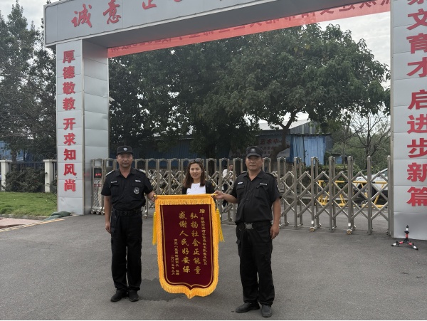 “太感謝袁隊(duì)長了!要不是他細(xì)心,我這電動車說不定就丟了,真是幫了我大忙!”9月3日下午,一位家長拿著書寫“弘揚(yáng)社會正能量 感謝人民好安保”的錦旗來到晝錦堂學(xué)校門口,她緊緊握著保安隊(duì)員的手連聲道謝,臉上滿是感激。這溫暖的一幕,源于技防分公司中隊(duì)長袁秋生對一輛未鎖電動車的細(xì)心保管。