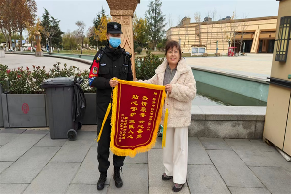 “當(dāng)時真的以為手機找不回來了,多虧了趙班長,不僅服務(wù)態(tài)度好,還這么有責(zé)任心,幫我解決了大麻煩!”11月17日,劉玉梅特意制作錦旗再次登門致謝,對趙書娜“急游客之所急、解游客之所難”的工作態(tài)度給予高度評價。面對贊譽,趙書娜靦腆表示:“這都是我應(yīng)該做的,保障游客權(quán)益、提供貼心服務(wù),本就是我們保安隊員的本職工作?!?