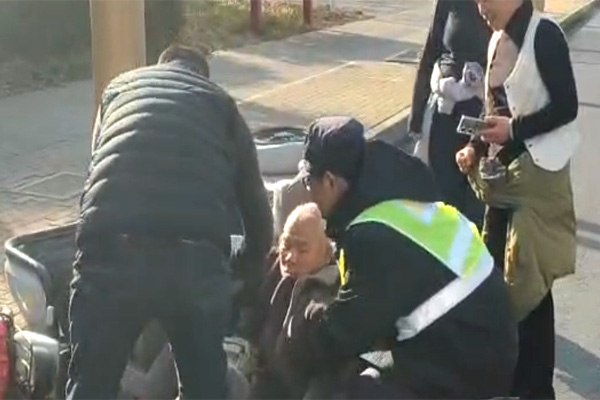 1月13日14時50分許,人防二大隊龍安區(qū)政法委巡防隊隊員整裝待發(fā),即將開展反詐宣傳大巡邏工作,突然發(fā)現(xiàn)政府南門西門崗西側(cè),一位老人騎行三輪車不慎側(cè)翻,身體被困車旁,情況十分緊急。