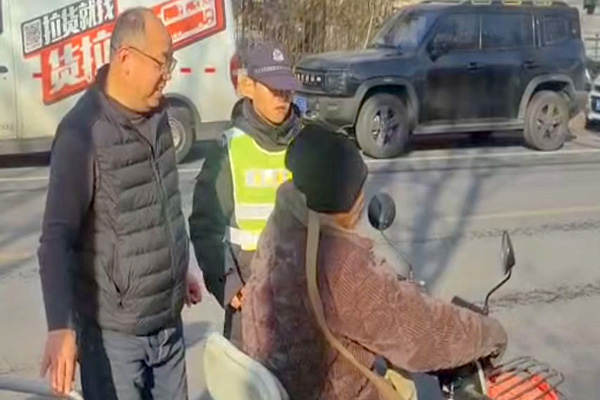 危急關(guān)頭,中隊長孫國彬與隊員李佳琦第一時間快步上前,一邊輕聲安慰老人別慌張,一邊小心翼翼地將老人扶起。隨后,兩人合力將側(cè)翻的三輪車抽起。待老人情緒平復后,孫國彬耐心詢問其身體感受及受傷情況,確認老人身體無恙,且能自行騎行離開后,又叮囑老人騎行途中務(wù)必注意安全、減速慢行。