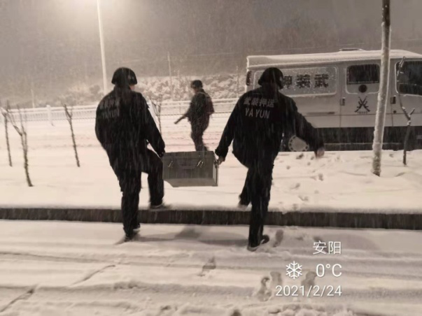 聯(lián)社、農(nóng)行中隊由于網(wǎng)點地處鄉(xiāng)下,再加上雨雪越下越大,山村道路濕滑,押運車車速明顯減緩,導致押運車到銀行網(wǎng)點接款時比原定時間推遲,聯(lián)社原康、任村線路收車回來已到晚上9時左右。雪上加霜的是聯(lián)社東姚線路車組押運車在晚上9時30分左右,行駛至采桑南景色村時車輛防滑鏈斷裂,車長段曉騰立即向大隊進行了匯報,大隊長楊海波立即安排應(yīng)急車組前去救援。因天黑、路滑、雪疾,聯(lián)社中隊最后一輛押運車安全歸隊時已是晚上11時45分,農(nóng)行中隊最后一輛車輛收車回來已到半夜12點24分,至此,大隊所有車輛安全返回,完成當日的押運任務(wù)。