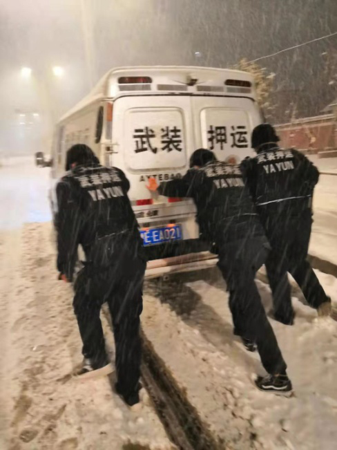 2月24日傍晚至夜間,守押七大隊各押運車組奮力迎戰(zhàn)暴風雪,全力確保押運安全。