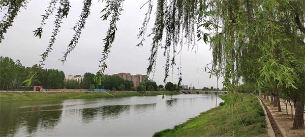 涌流遠上水連天,源頭名勝林慮山。 橫入善出三千載,孕育文化驚世間。 鶯聲燕語岸柳舞,微風(fēng)輕拂波瀲滟。 釣友垂桿忘時辰,亭閣臺榭炫梨園。